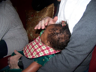 We had 4 wonderful Christmas celebrations this year! Josh and I enjoyed our Christmas on Monday night with a yummy dinner, gifts, dessert and then drove around with peppermint mochas while we looked at Christmas lights and listened to our new CDs! Our Christmas celebrations were all wonderful with great family, food and thoughtful gifts! We enjoyed introducing M to some of our family and M enjoyed getting spoiled rotten by her grandparents and many others!!! I need to work on getting more pics of M that I can actually post. We have so many wonderful pics, but these are the only ones I can post. Hope you had a very merry Christmas!!